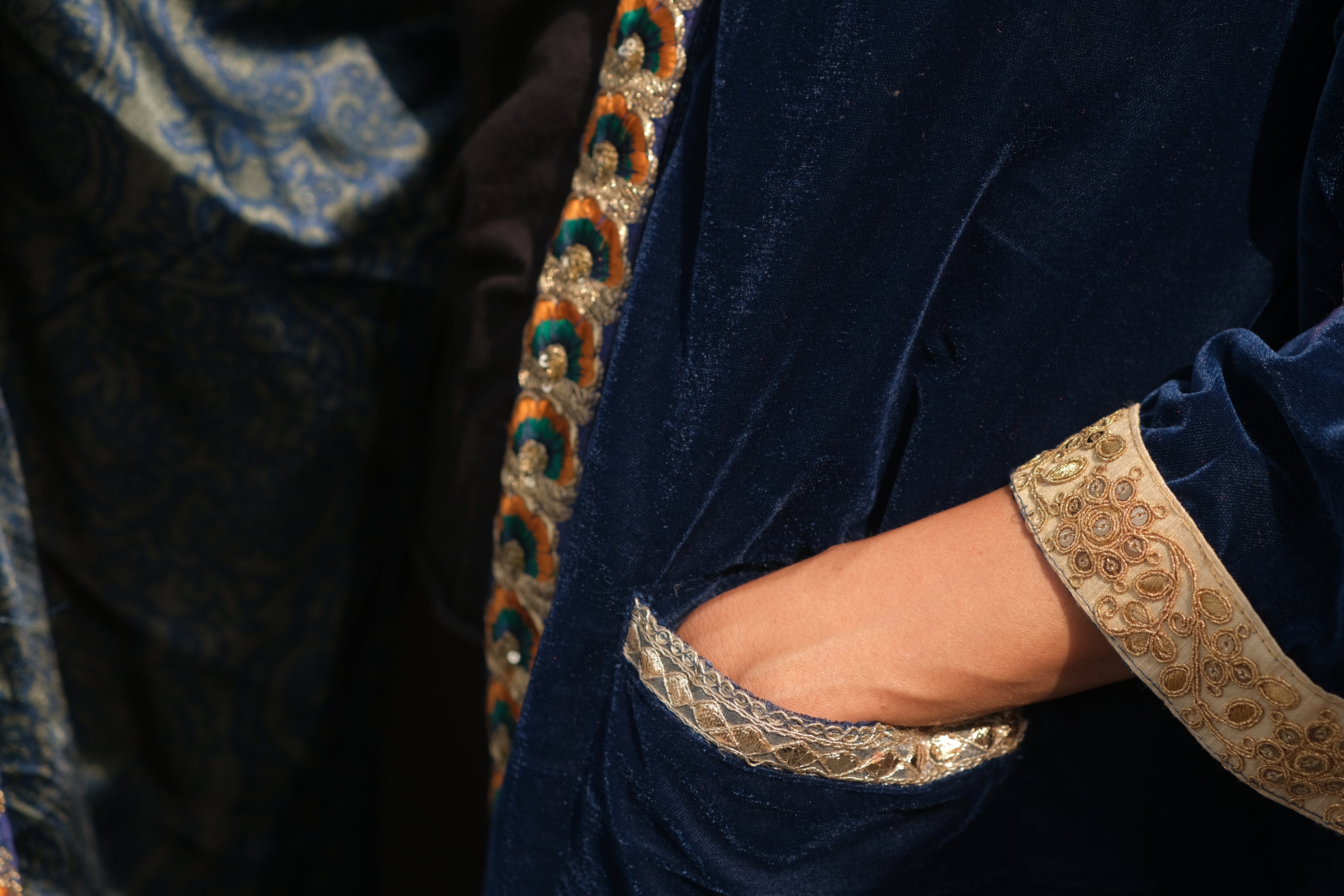 - Fabrics: Velvet on the outer layer and satin print on the inner layer