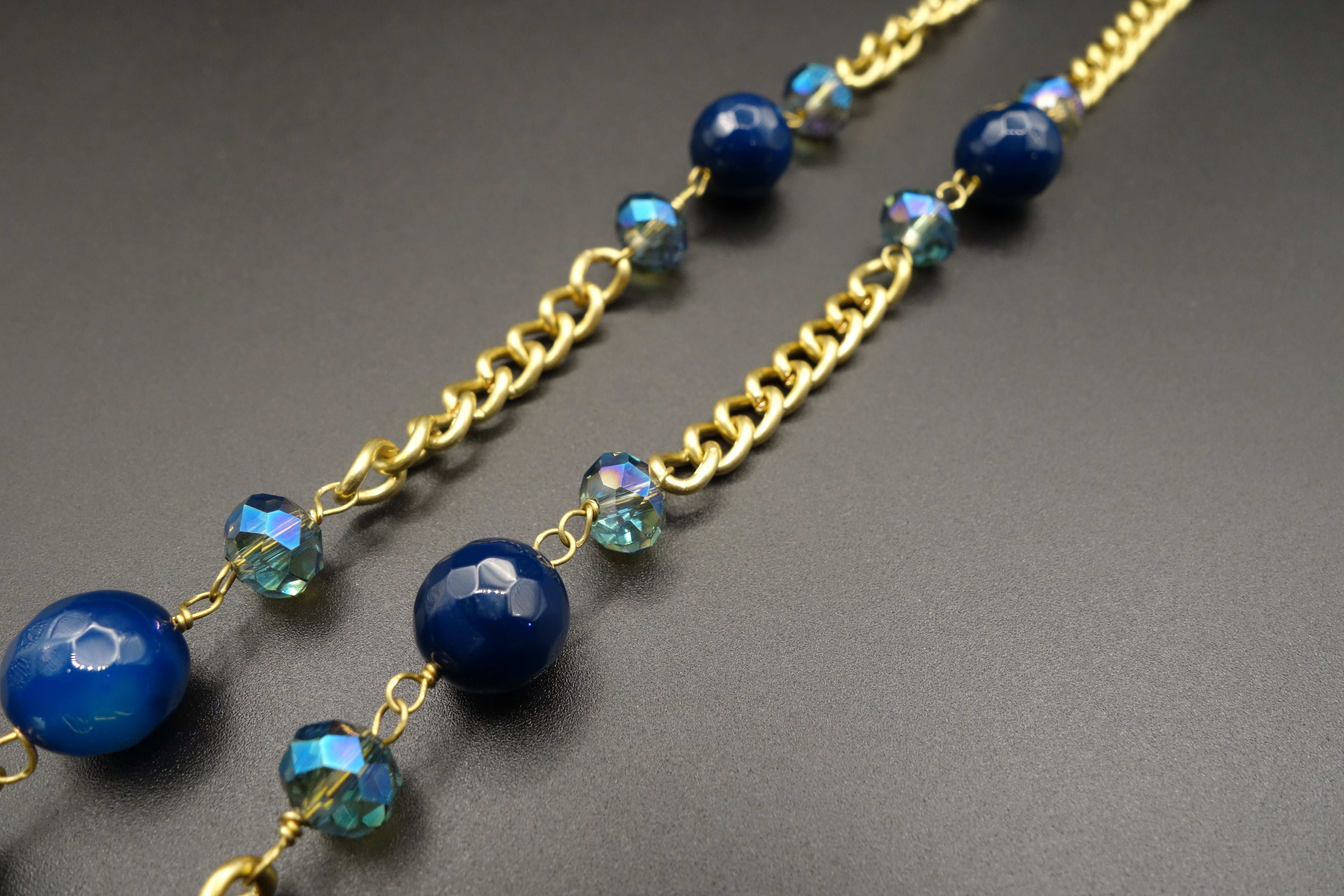 Elevate your sunglasses/eyeglasses look with a unique brass chain embellished with Agate turqoise gemstones and turquoise stones.