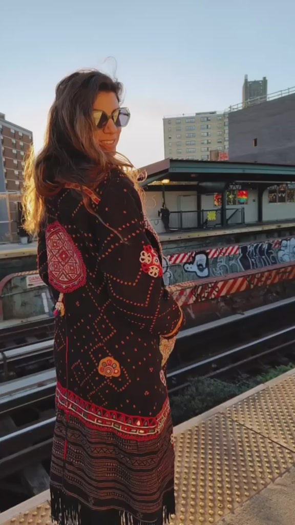 *SUSTAINABLE: made with recycled rich merino wool shawls and recycled vintage dresses.